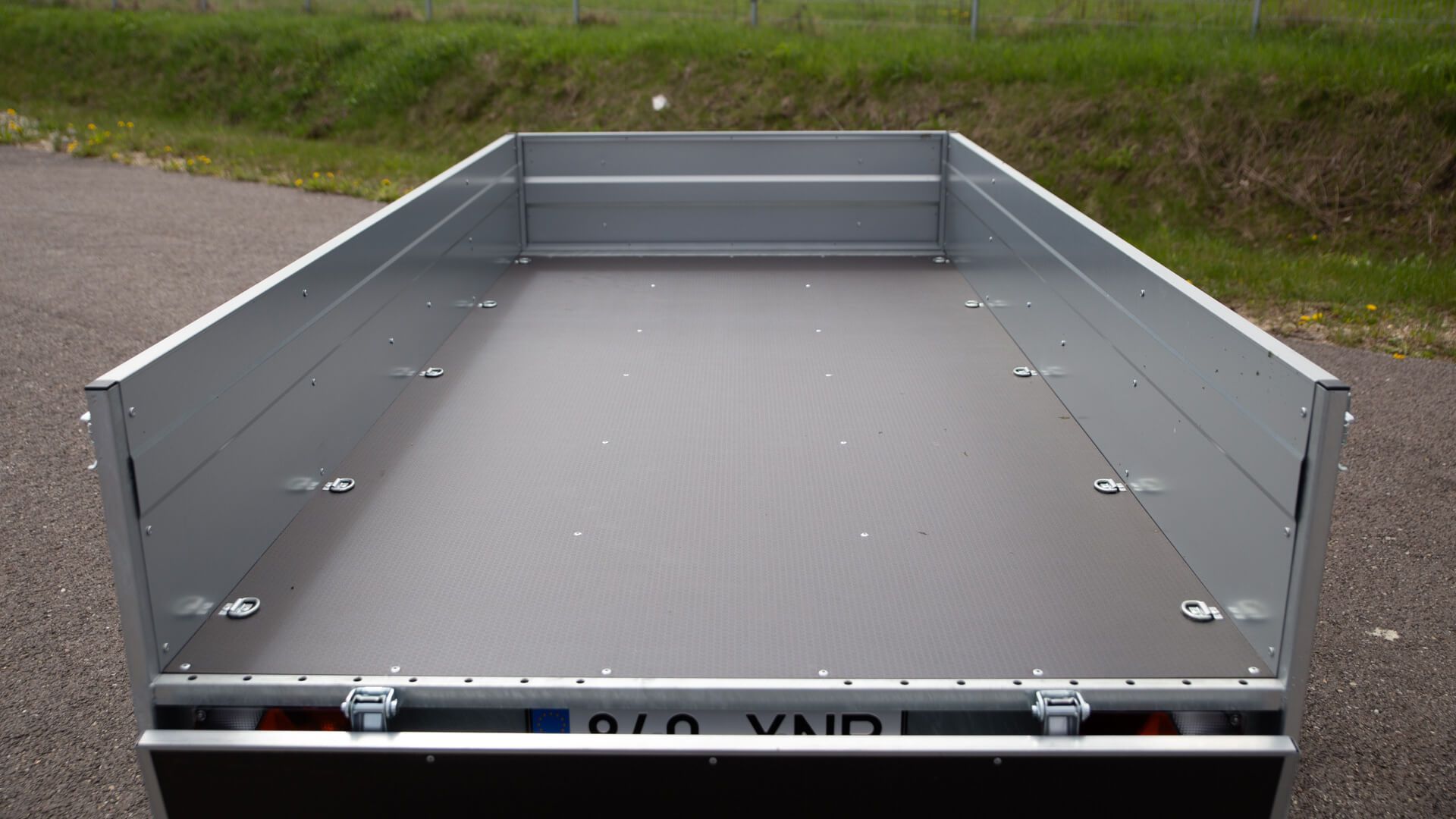 Iznimno čvrst i izdržljiv zavareni čelični okvir. Nosive ploče i blatobrani izrađeni su od visokokvalitetnog lima obloženog Magnelis®-om, koji je 3 puta otporniji na koroziju od običnog HDG-a. Izvanredno upravljanje i dugotrajnost postižu se zahvaljujući 4-lisnatim oprugama, amortizerima i vodootpornim glavčinama kotača. Izdržljivi pod od šperploče nije samo vodootporan već je i otporan na klizanje. Najbolje ga je opisati kao prikolicu više kvalitete, jednostavnu za korištenje.