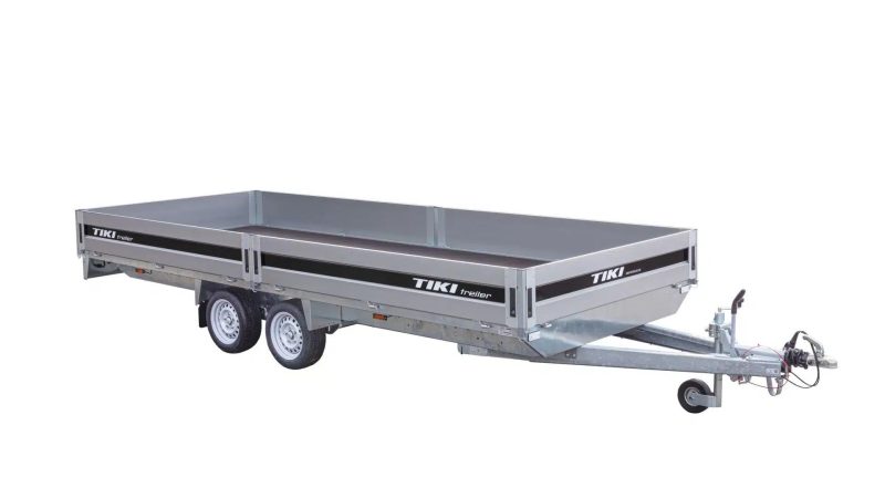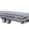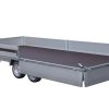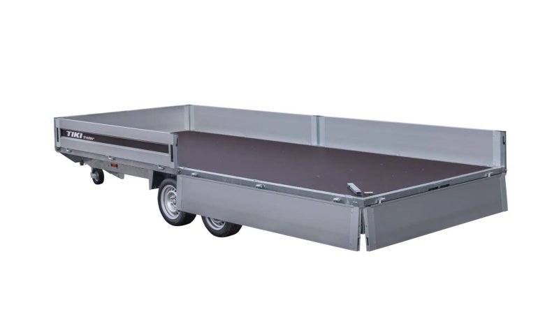 Višenamjenska prikolica s platformom čvrste konstrukcije i glatkog dna. Aluminijski rubovi koji se otvaraju prema dolje i mogu se ukloniti omogućuju korištenje prikolice kao platforme, na primjer, ili za praktičan i brz utovar robe sa svake strane viličarom.