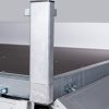 Čvrsta i izdržljiva prikolica s ravnim podom i zavarenim čeličnim okvirom s HDG premazom. Izrađena od lima s Magnelis® premazom koji je 3 puta otporniji na koroziju od običnog HDG lima. Dvostruka torzijska osovina izuzetno je pouzdana i pruža vam bolju stabilnost čak i na težim terenima. Izdržljivi pod od šperploče je vodootporan i neklizajući. Sve ploče se lako otvaraju i uklanjaju, što omogućuje praktičan utovar sa svih strana.