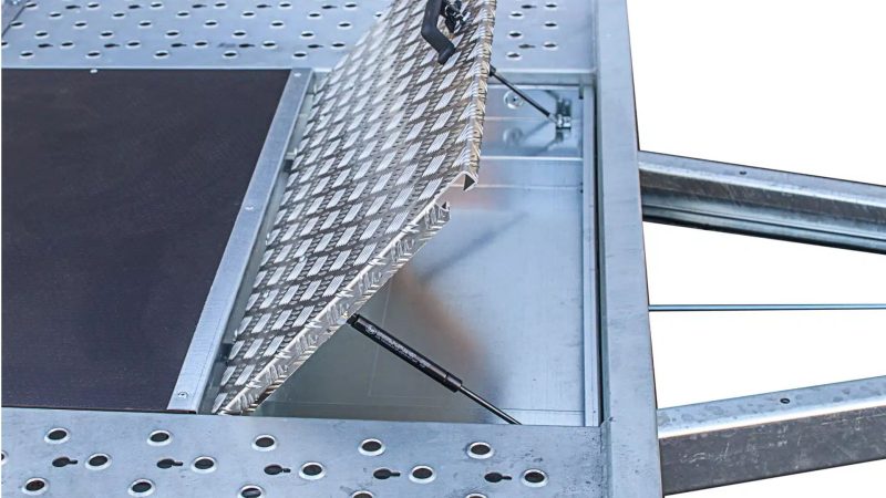 - Laminirani vodootporni pod od šperploče u sredini prikolice