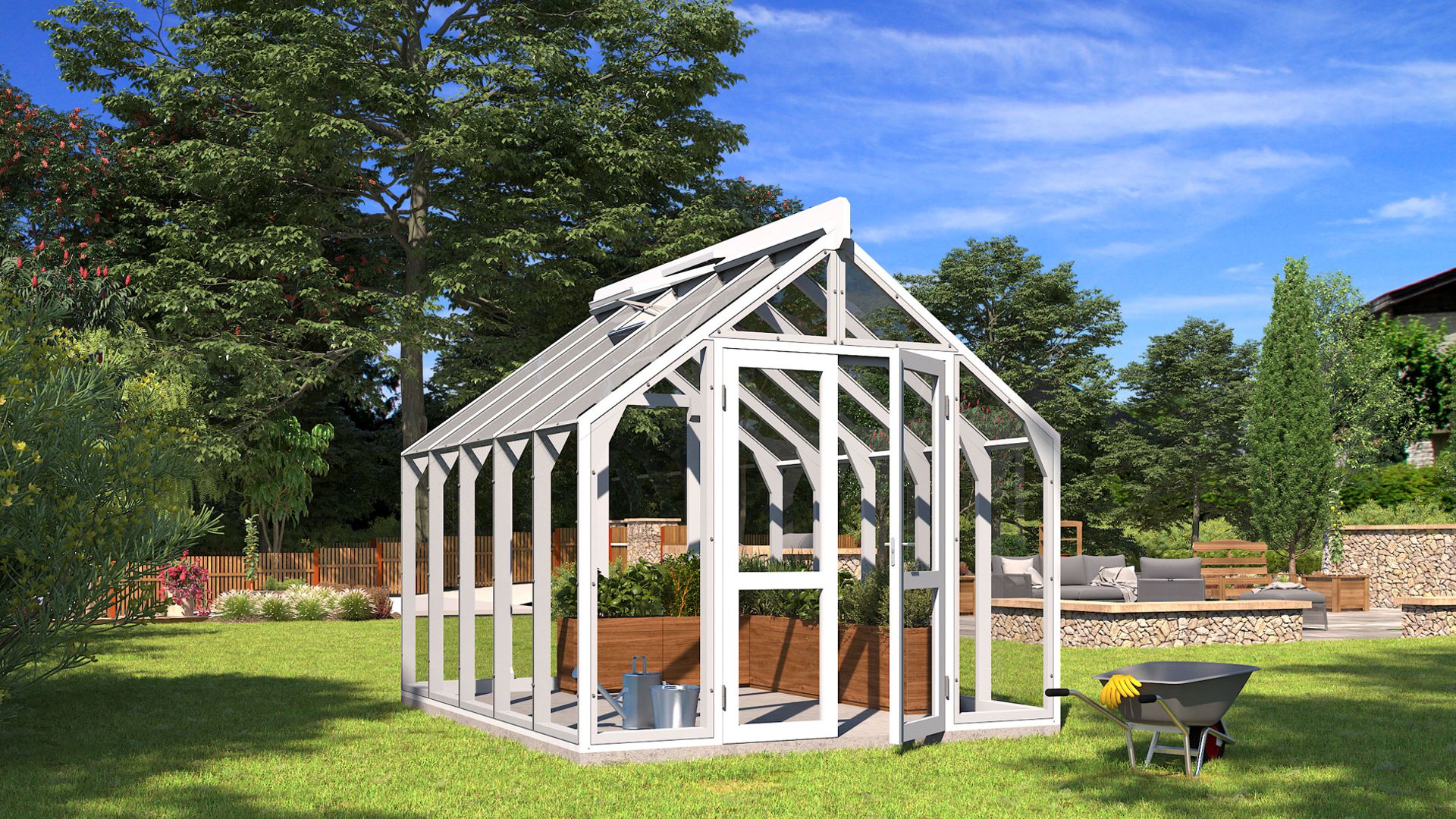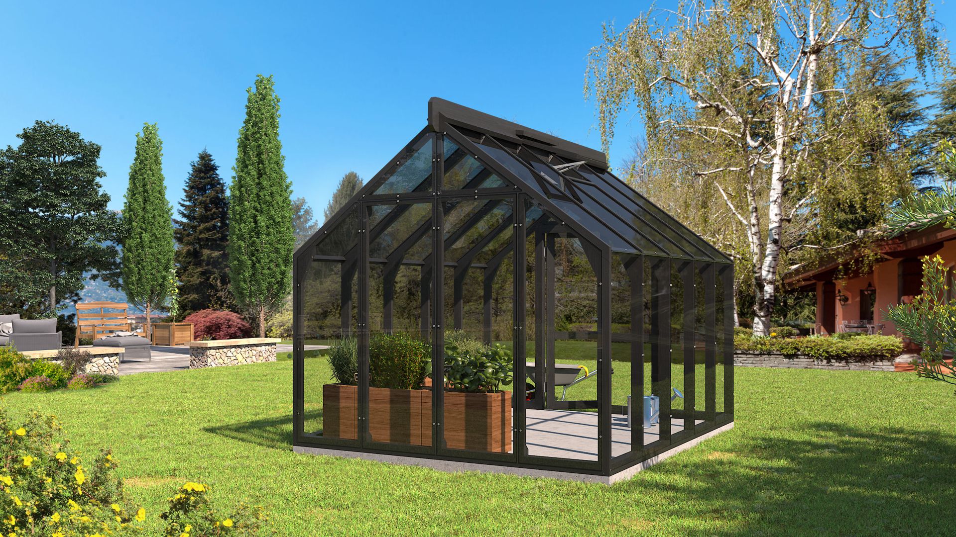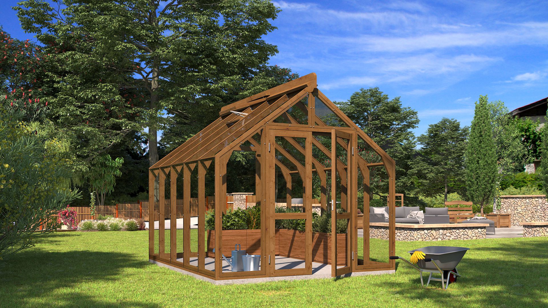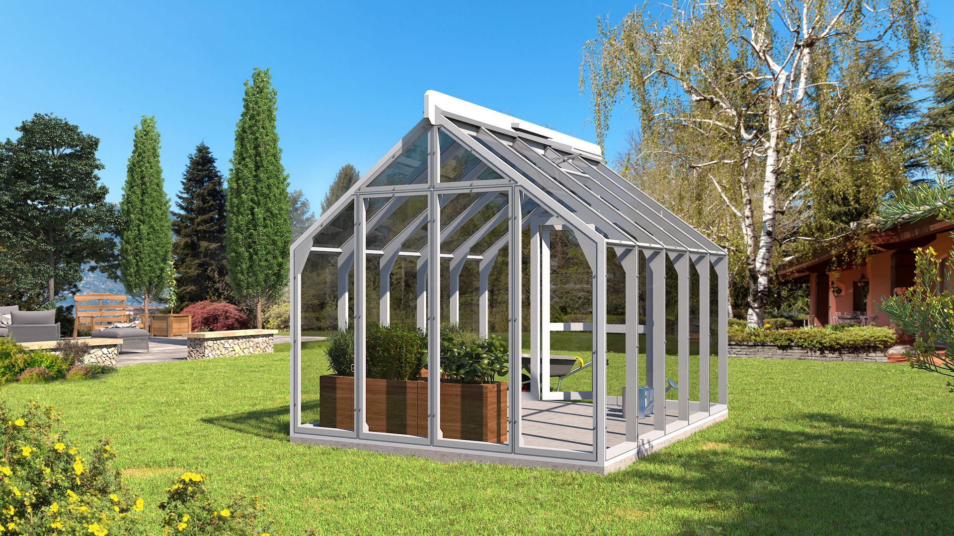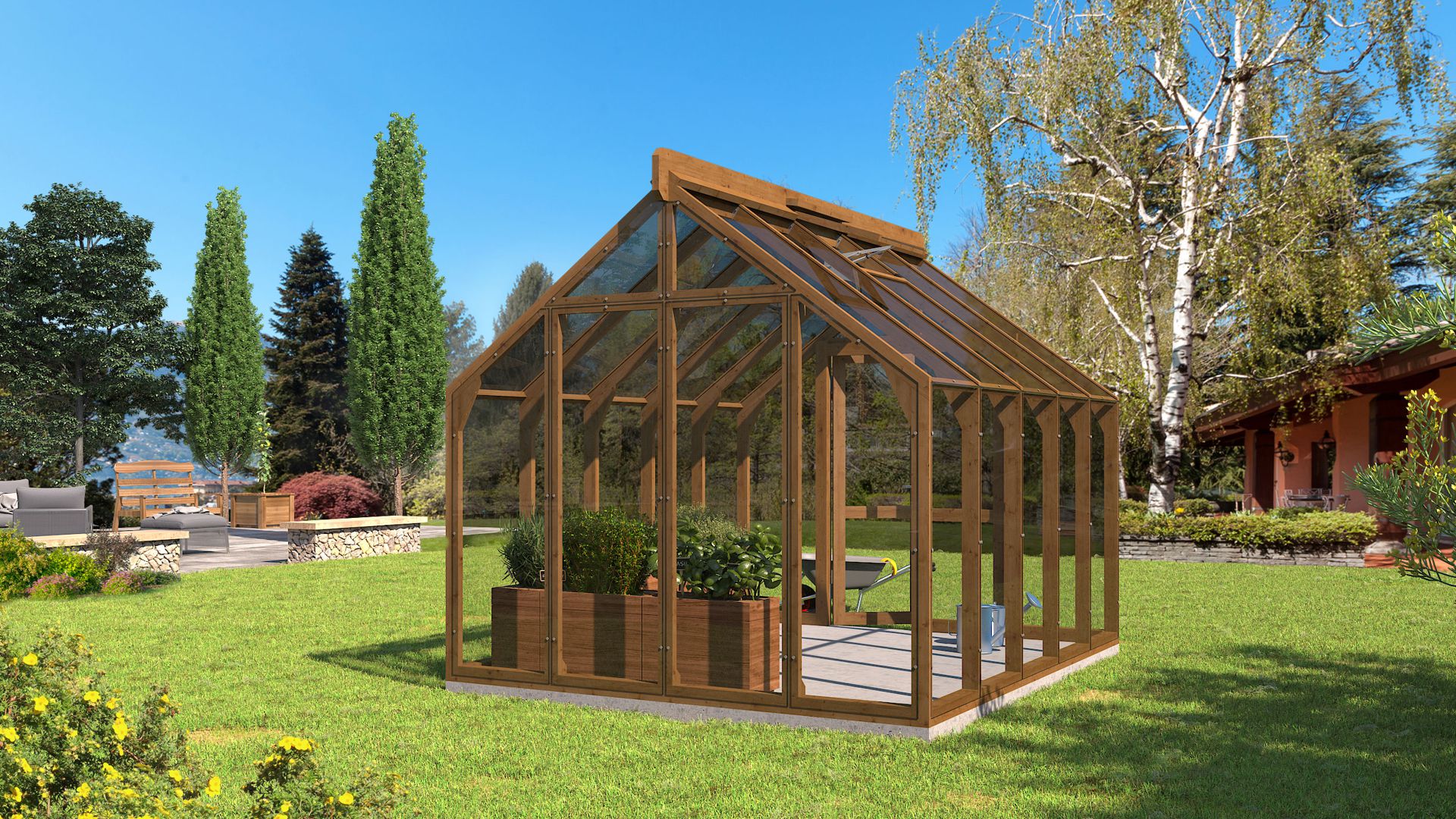 Zimski vrt NO 1 je atraktivan i visokokvalitetan drveni staklenik izrađen od izdržljivog i jakog termodrva i 4 mm kaljenog stakla. Kod ovog drvenog staklenika, drveni okvir leži na snažnom temelju, a staklo seže do tla, što osigurava maksimalan prostor i svjetlost u stakleniku. Staklenik je dostupan u širokoj paleti ulja ili boja, među kojima svatko može pronaći odgovarajuću. Zimski vrt NO 1 idealan je za uzgoj povrća, začina i cvijeća.